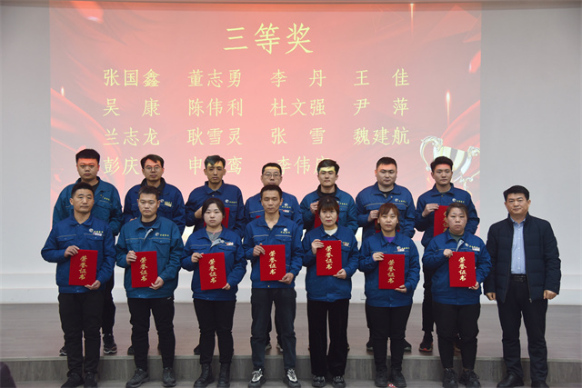 公司在全面總結2023年技術工作的基礎上,對42名優秀技術人員以及1個優秀綜合評比團隊進行了表彰,向7名工程師主任代表、工程師代表、技術員代表頒發了聘書。