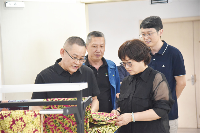 5月28日,由中國紡織行業創意與協同設計重點實驗室主任李斌紅、中國紡聯生產力促進部副主任、中國紡織信息中心產品開發部主任陳小麗帶隊的“紡織行業產品開發創新秘書處調研專家組”到公司進行考察調研。公司黨委書記、董事長盛守祥,副總經理王超,技術總監、工程技術研究院院長孫紅玉陪同調研。
