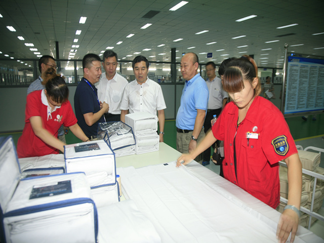 座談結束后,張繼剛一行在副市長王文祿、公司總經理閆英山及班子成員邱淑芳、劉水超、孫中然陪同下,參觀了工程技術研究院、花二車間、中控室、家紡成品展廳、家紡成品車間、智能立體倉庫等處所。